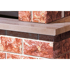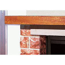Угловая облицовка, боковые детали и цоколь которой выполнены из желтого мрамора istria, с горизонтальными прорезями. Плита из полированного коричневого стонелита, балка из натурального дерева.