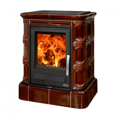 Кафельная печь Marina KP вставка комбо кафельный цоколь коричневая, с теплообменником