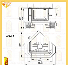 Предтопочная и надтопочная часть выложена шамотом песочно-жёлтого цвета. Каминная балка изготовленная из МДФ и покрытая шпоном дуба, послужит отличной полкой для каминных аксессуаров, таких как часы, канделябры, рамки с фотографиями и др.