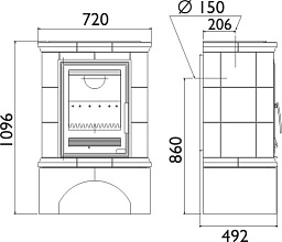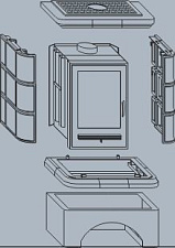 Корпус каминной топки выполнен из жаропрочной стали, колосники и патрубки из чугуна.