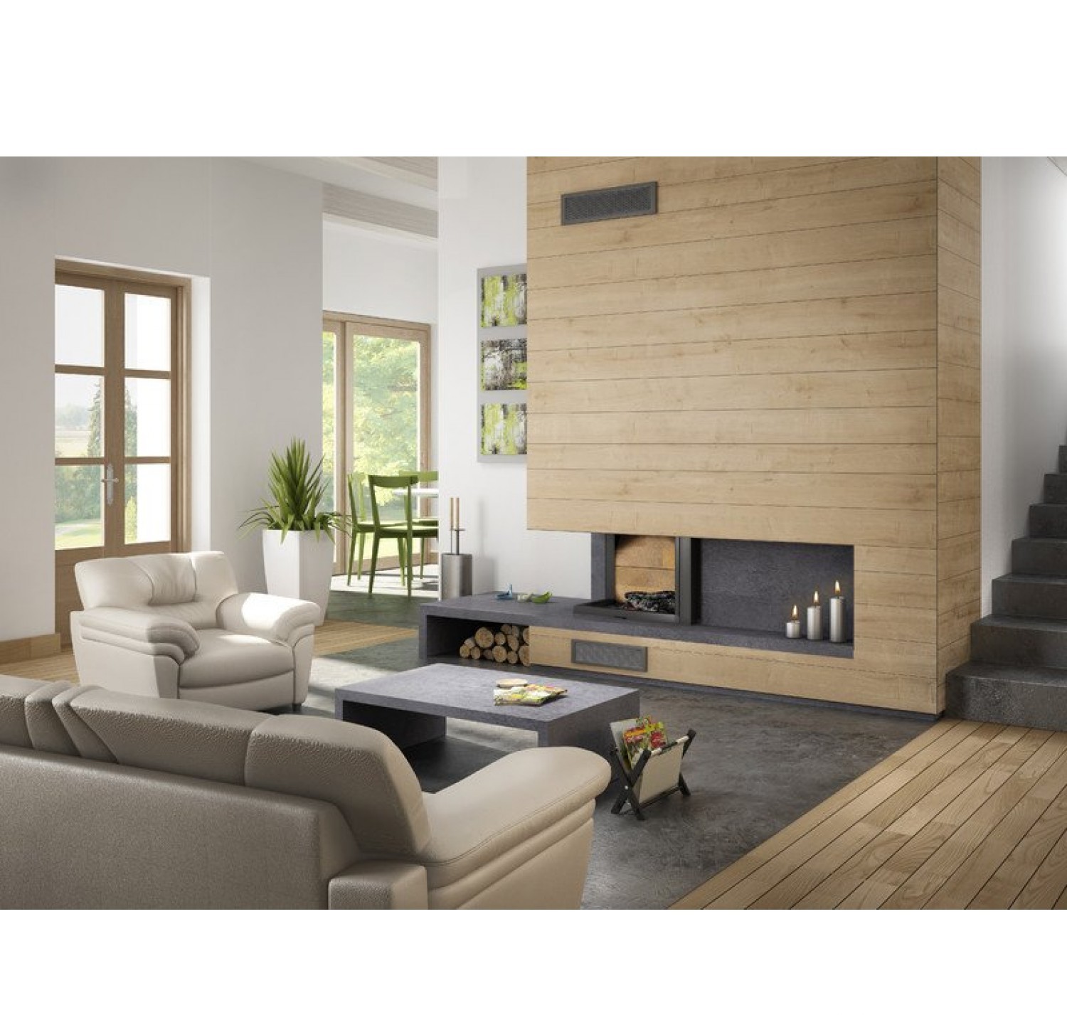 Топка Lateral 900 выполнена из легированной стали.Ширина очага 770 мм, глубина очага 390 мм. Высота видимой части пламени 564 мм. Очаг выложен кирпичными блоками со швами. Размер блока 110х220 мм. Подъемная ручка двери прямая 12 см.